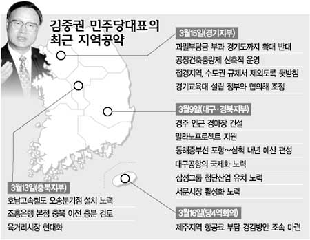 타 지역의 반발을 고려하지 않은 공약도 있다. 당 정책위 관계자는 “김대표가 조흥은행 본점 충북 이전을 충분히 검토하겠다고 했는데, 그것은 다른 후보지인 대전 등 지역 주민들을 등 돌리게 할 우려가 있다”고 말했다.