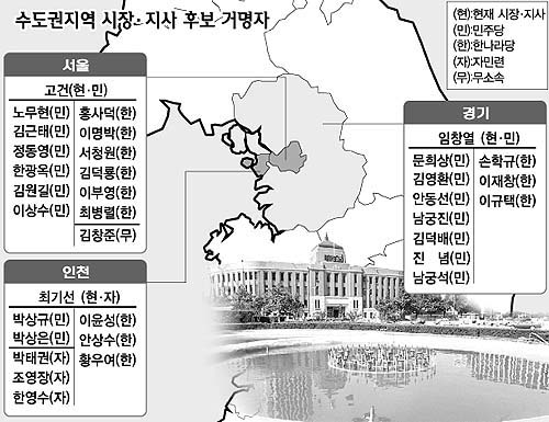 민주당 내엔 서울에 고 시장이 재출마할 경우 경기에는 김근태 최고위원이나 김원길 장관 등 정치인을 투입하고 서울에 정치인이 나설 경우는 진념(陳稔) 부총리 겸 재정경제부장관이나 남궁석(南宮晳) 의원 등 테크노크라트형 인사를 밀어야 한다는 주장이 많다.