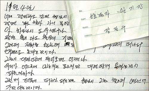 장길수군의 육필 일기장