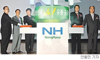 농협이 영문 이니셜을 딴 새 기업이미지(CI) ‘NH’를 발표했다. 농협은 28일 서울 중구 충정로1가 본사에서 열린 창립 46주년 및 축산업·인삼업협동조합과의 통합 7주년 기념식(사진)에서 새 CI를 발표하고, 2015년까지 ‘대한민국 No.1 유통 금융 리더’가 되겠다는 비전을 선포했다. 농협은 새 CI인 NH에 대해 “농협의 영문 이니셜인 동시에 자연(Nature)과 인간(Human)의 조화를 상징한다”고 설명했다.