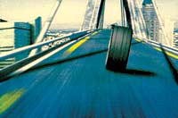 ▽금호타이어(엑스타편)〓타이어 하나가 도심의 고가도로를 질주한다. 건물 유리창에 비친 타이어의 모습은 자동차 경기 포뮬러 원(F1)의 레이싱 카. 신제품 타이어 ‘엑스타’가 포뮬러 타이어의 기술을 이용해 만들어졌다는 점을 나타냈다. 포뮬러 카의 모습을 보여주기 위해 제작진은 꼬박 1개월간 컴퓨터 그래픽작업에 매달렸다고.