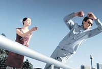 ▽SK텔레텍(SKY 집착편)〓아름다운 여성이 SKY 휴대전화기를 다리 밑으로 던지자 따라오던 남자들이 일제히 SKY를 잡기 위해 다리 아래로 뛰어내린다. 선글라스 때문에 SKY 휴대전화기를 알아보지 못해 안 뛰어내린 남자 모습이 우습다. SKY 휴대전화기가 다리 아래로 뛰어내려 구할 만큼 명품인 점을 나타냈다.