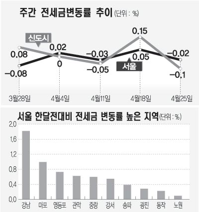 서울 지역 전세금 변동률은 ―0.02%로 강서권(0.01%), 강남·강북권(―0.03%) 모두 약보합세를 보였다.
