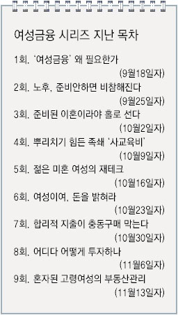 ▽“한 단계씩 새로운 투자의 세계로”형=삼성증권 법무팀의 이정숙 상무(38)는 주위 사람들의 도움을 받아 조금씩 투자 영역을 넓히는 데 성공했다.
