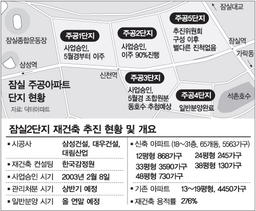 서울 송파구 잠실동 잠실주공2단지는 수도권 재건축 아파트 가운데 투자 문의가 가장 많이 몰리는 곳이다. 신천역과 한강을 끼고 있어 잠실 저밀도지구 5개 단지 가운데서도 입지여건이 좋은 곳으로 꼽힌다.