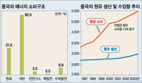 ▽“화석연료에만 목 맬 수 없다”=중국은 지난주 독일 본에서 열린 ‘재생가능 에너지 콘퍼런스’에서 2010년까지 전체 에너지 소비량의 10%를 재생가능 연료를 통해 확보하겠다고 선언했다.
