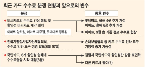 양측간의 협상이 이뤄지지 않으면 수수료 분쟁은 비씨카드에 이어 국민카드와 주요 할인점 업체들과의 갈등으로 확대될 전망이다.
