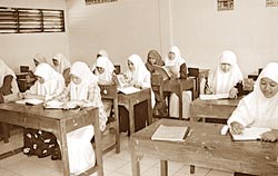 초등학생때 집을 떠나 이곳에서 생활하는 것은 수행이나 마찬가지. 새벽 기도로 하루를 시작해 아침식사 전 종교학습, 오후 1시까지 정규교육을 받는다. 식사 후에는 과외활동과 외국어교육을 하며 저녁 기도로 일과를 마치고 10시에 취침한다. 1년에 세 번, 일주일씩 휴가 때 집에 간다. 월 수업료는 기숙사비를 포함해 16만5000루피아(약 2만원).