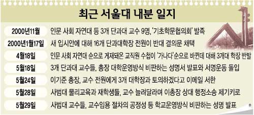 ▽분열 실태〓서울대 사범대 교수 95명은 29일 오전 대학당국에 대한 항의성명서를 발표하고 ‘사범대 홀대’와 ‘총장의 독단적 학교 운영’에 강력히 반발하고 나섰다.