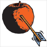 화살은 머리 위에 놓인 사과를 정통으로 쪼개 버렸다.