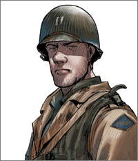 밀리터리 만화 ‘알라모’에서 적군의 기관총 진지를 파괴할 것인가를 두고 고민하는 밀러 대위의 부대원들(위 그림). 밀러 대위(아래 그림)는 불필요한 희생을 우려해 그냥 지나치자고 말한다. 그림제공 새만화책