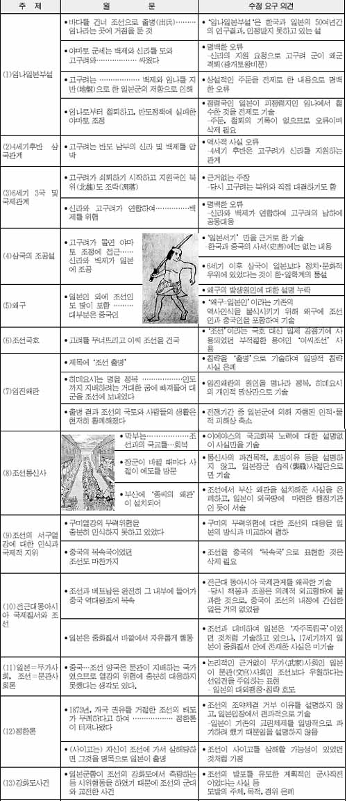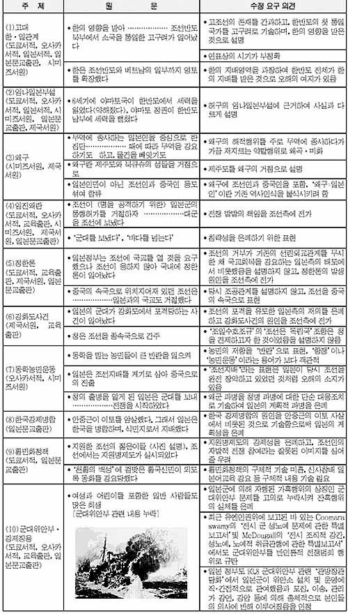 | ▼日역사교과서에 대한 한국정부의 재수정 요구 내용▼ |
