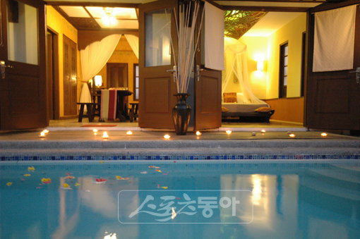 리조트내 풀 한가운데는 아름다운 야경을 즐길 수 있는 바가 있어 운치있는 만찬 혹은 술자리를 즐길 수 있다. 마지막 날 저녁 마닐라 해변에서 특별한 선셋 크루즈를 즐기는 것도 색다른 추억을 남길 수 있다. 물론 이용료 포함. 김해출발은 7만원 추가. 02-3210-0110. www.sm-tour.co.kr