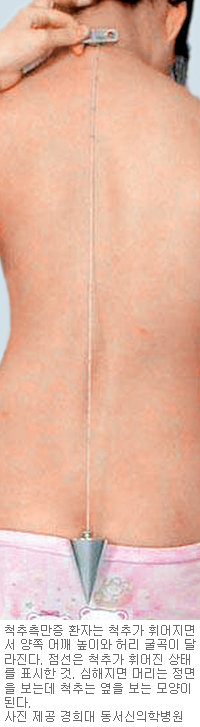척추측만증은 척추가 휘는 질환으로 주로 청소년 때 발견된다. 척추가 S자 모양으로 구부러져 신체 좌우의 균형이 맞지 않는다.