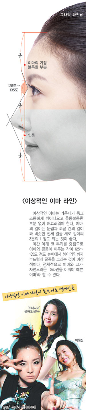 시청률 30%를 웃도는 MBC 월화드라마 ‘선덕여왕’을 보자. 치명적인 ‘악녀’ 미실(고현정)과 선한 천명공주(박예진)가 모두 묘한 매력을 풍기는 것은 곱게 빗어 올린 머리 아래로 도톰하게 튀어 나온 이마가 노출되기 때문이다. 이런 이마는 단아함과 품위, 여성성을 물씬 풍기며 남성들은 물론이고 여성들도 빠져들게 만든다.