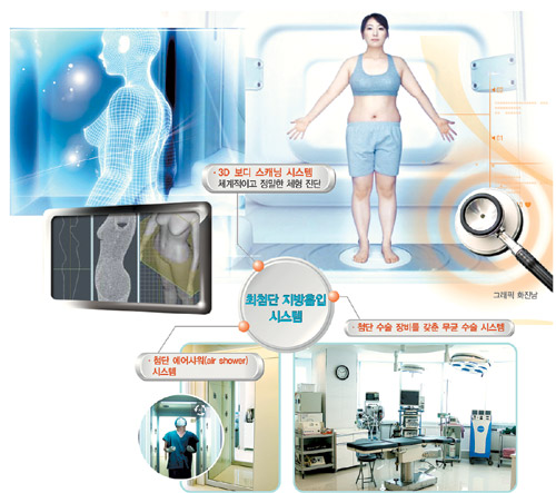 지방흡입술이 이처럼 쉽지 않은 것은 환자가 누운 상태에서 수술을 받기 때문이다. 서 있을 때의 지방분포를 정밀하게 계산한 뒤 지방을 제거하지 않으면 예상과 다른 결과가 초래될 수 있는 것.
