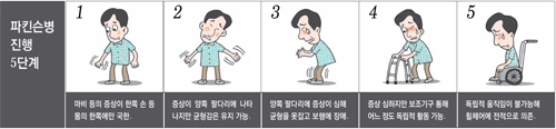파킨슨병의 가장 큰 특징은 운동 능력이 떨어진다는 것이다. 중추신경계가 퇴화하면서 근육이 뻣뻣해지고 굳는다. 한쪽 팔과 다리가 생각처럼 움직이지 않고 행동이 느려진다. 누웠다가 일어나기 힘들고 균형을 잡지 못한다. 걷다가 생각하는 지점에서 멈추지 못해 앞으로 고꾸라지기도 한다. 또 발음이 어눌해지고 목소리에 높낮이가 없어지는 등 언어 능력이 떨어지고 침이 계속 흐르거나 음식을 삼키기가 어려워진다.