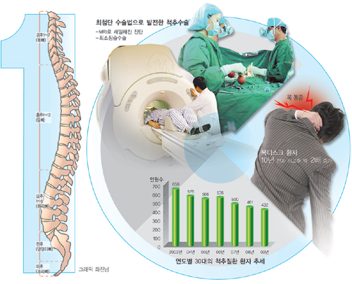 척추관절전문 21세기병원은 10년 전부터 최소침습수술을 이용해 환자들을 치료했다. 이 병원의 통계자료를 바탕으로 10년 전과 현재의 척추질환이 어떻게 달라졌는지를 살펴봤다.