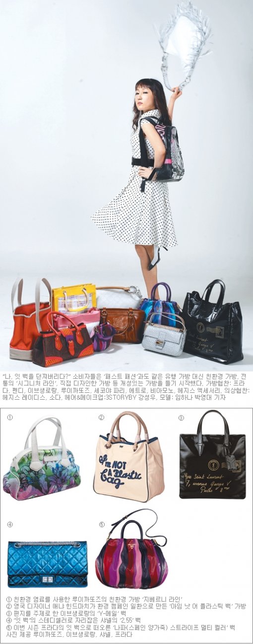 잇 백이 사라진 시대. 명품 위주의 잇 백에서 벗어난 소비자들의 새로운 흥밋거리는 바로 개성이다. 특히 올해에는 ‘친환경’, ‘재활용’ 등을 주제로 한 자연친화적 가방들이 눈에 띄게 많이 소개되고 있다.