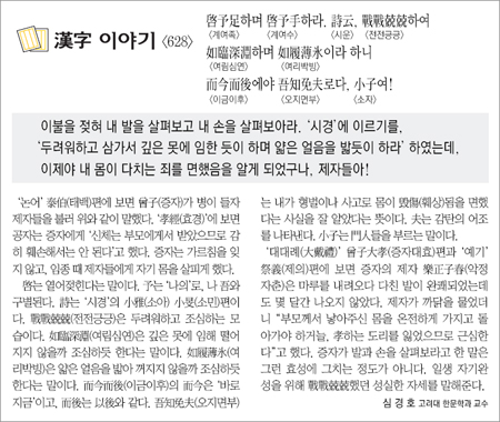 [한자 이야기]<628>啓予足하며 啓予手하라. 詩云, 戰戰兢兢…