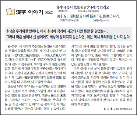 [한자 이야기]<652>後生可畏니 焉知來者之不如今也리오…