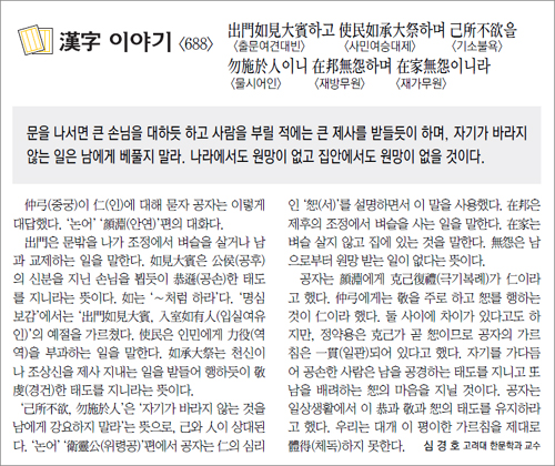 仲弓(중궁)이 仁(인)에 대해 묻자 공자는 이렇게 대답했다. ‘논어’ ‘顔淵(안연)’편의 대화다.
