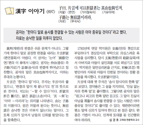 [한자 이야기]<697>子曰, 片言에 可以折獄者는 其由也與인저…