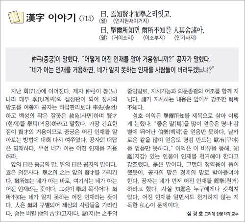 [한자 이야기]<715>曰, 焉知賢才而擧之리잇고.…