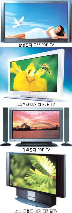PDP TV는 42인치와 50인치가 가장 많이 나간다. 벽에 걸 수 있고 비교적 얇기 때문에 대형 화면을 좋아하면서도 공간 절약형을 추구하는 사람들에게 맞다. 요즘은 신혼부부들도 25평형 아파트에 40인치 PDP TV를 설치하는 일이 늘고 있다.