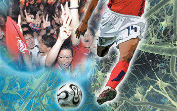 축구경기에 열중해 있는 붉은악마의 뇌에서는 ‘거울뉴런(mirror neuron)’이 활발히 작동한다. 이 세포는 태극전사의 움직임 하나하나를 마치 ‘거울’처럼 그대로 비춘다. 이 때문에 붉은악마는 마치 자신이 실제로 축구를 하는 것처럼 여기게 된다는 것.