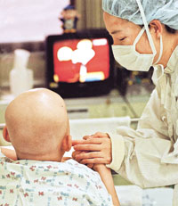 ▽병을 받아들여라=아무리 아이들이 잘 참는다 해도 오랜 투병은 모두를 힘들게 한다. 병원의 규칙과 의사의 지시가 짜증이 나기도 한다. 그러나 반발은 도움이 되지 않는다. 그 대신 현실을 받아들이도록 한다. 가령 입원실을 ‘나의 공간’으로 인식해 아기자기하게 꾸미는 것도 좋다. 아이의 정서 안정에도 도움이 된다. 평소 집에서 쓰던 담요나 인형, 포스터, 장난감 등을 가져오도록 한다.