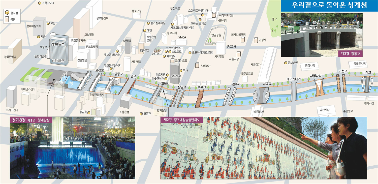 [청계천,우리 곁으로]청계 8경 산책…현대와 과거 한자리에