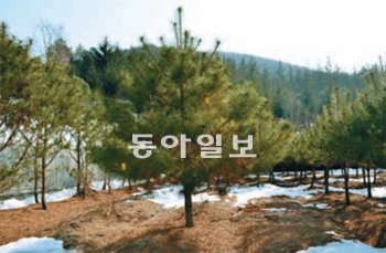 충북 청원군 미원면 미동산 수목원에서 자라고 있는 15년생 정이품송 후계목. 청원=장기우 기자 straw825@donga.com