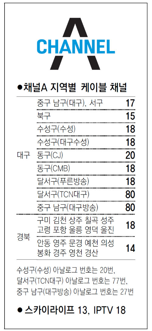 [대구/경북]채널A 지역별 케이블 채널