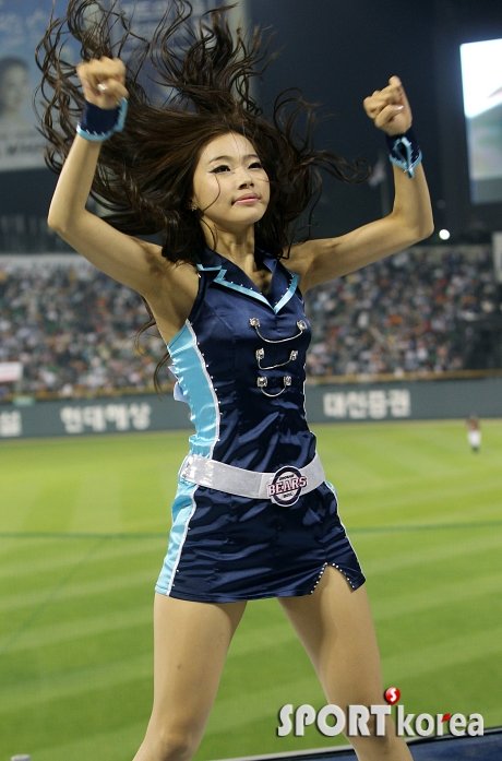 25일 오후 서울 잠실야구장에서 열린 `2012 팔도 프로야구` 두산 베어스와 롯데 자이언츠의 경기에서 두산베어스 치어리더 임아름이 화려한 공연을 펼치고 있다.