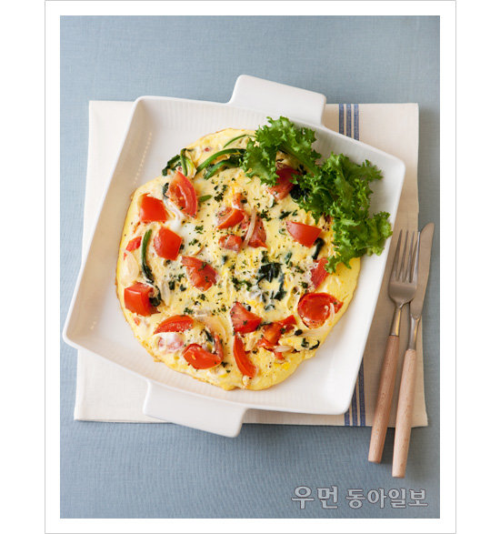 달걀을 혼합시킨 재료로 만드는 이탈라아식 오믈렛 프리타타(frittata). 저열량으로 다이어트에 좋은 토마토와 시금치를 넣어 건강하게 즐겨보자. 식상한 다이어트 요리가 지겨울 때 색다르게 즐길 수 있는 별미로 ‘시금치프리타타’를 만들어 보자.