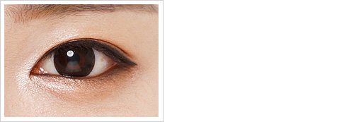 젤라이너로 눈 앞머리 부분과 언더라인 앞부분을 연결한다. 이 때 눈 앞머리 라인은 본래의 눈모양보다 1~2mm 앞으로 빼서 시원하게 연출한다.