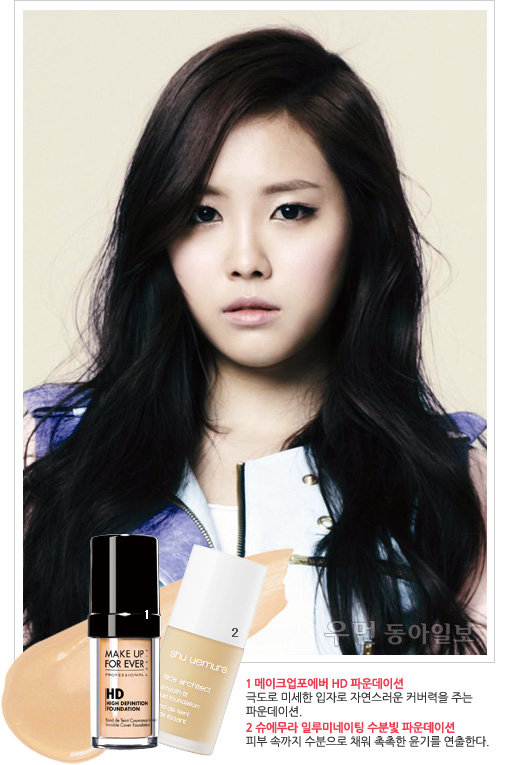 매끄럽고 고른 피부결을 그대로 표현해주기 위해 파운데이션 단계에서 브러쉬를 이용해 피부결에 따라 가볍게 발라준다. 이렇게 얇게 한톤을 정리해주고 한 번 더 덧발라 주면 촉촉하게 수분감을 주었던 피부에 완벽하게 밀착돼 한듯 안한듯한 내추럴한 베이스를 연출할 수 있다.