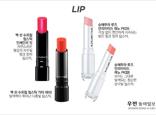 글·이수영<우먼 동아일보 http://thewoman.donga.com 에디터 swim1020@hanmail.net> 김향아<우먼 동아일보 http://thewoman.donga.com 인턴 에디터 nyahh2005@nate.com> 도움주신 곳·정샘풀 인스퍼레이션 청담 west점 02-518-8100 맥 02-3440-2645 뮬 02-3446-3092 미키모토 02-3446-3091 샤넬 02-3708-2007