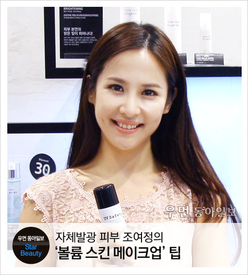 조여정의 ‘볼륨 스킨 메이크업’ 포인트! 아기 피부처럼 잡티 없이 깨끗하고, 볼륨감 있는 얼굴을 연출한다. 맨 얼굴 느낌이 날 정도로 베이스를 투명하게 정돈한 뒤, 다크써클 같은 어두운 부위에만 전용 컨실러를 사용해 화사하게 정돈한다. 얼굴의 입체감을 살리기 위해 외곽에는 베이스를 최소화하고 얼굴 중앙에 하이라이트를 더한다. BASE 기초케어 후 수분 마스크를 10~20분간 붙여 메이크업이 잘 받을 수 있도록 기초 공사를 해준다. 마무리 단계에서 촉촉한 제형의 볼류머를 바른 후, 흡수할 수 있는 충분한 시간을 두고 두드려준다.