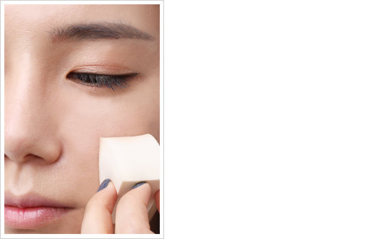 기존의 베이스 위에 밤 타입 모이스처라이저를 스펀지에 묻혀 볼을 중심으로 톡톡 두드려준다. 베이스를 따로 하지 않아도 쉽고 빠른 광채 페이스가 완성된다.