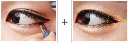 언더라인은 눈 앞머리부터 눈꼬리까지 이어지는 또렷한 라인을 그린다. 이 때 언더라인 뒷꼬리가 윗 라인과 만나지 않도록 공간을 만들어준다.