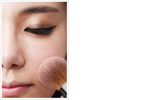 핑크 블러셔를 사선으로 바른다.