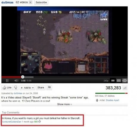 사실 계시물의 원본은 ‘한국에서 여자랑 결혼하려면. 먼저 그녀의 아버지와 스타크래프트 게임에서 이겨야 한다’(in Korea if you want to marry a girl, you have to beat her father in StarCraft)는 내용이었다.