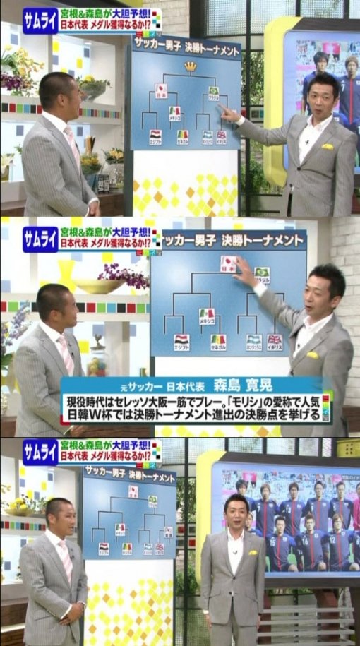 두 사람은 또다른 4강 대진에 대해 D조 1위로 8강에 오른 일본의 무난한 결승 진출을 예상했다. 이집트와 멕시코는 일본의 상대가 되지 않을 것이라는 예측이었다. 또한 브라질과의 결승전에서도 '스페인을 꺾은 일본의 기세'를 내세워 금메달을 예측했다.