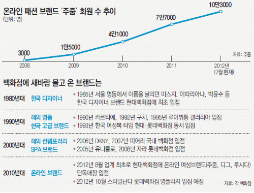 신영섭 현대백화점 바이어는 “1980년대 명동 디자이너, 1990년대 해외 명품 브랜드가 백화점 패션계에 새바람을 일으켰다면 앞으로는 젊은 인터넷쇼핑몰이 혁신의 주역이 될 것”이라며 “치열한 생존경쟁을 통해 검증됐고 젊은 감각이 있기 때문”이라고 말했다.