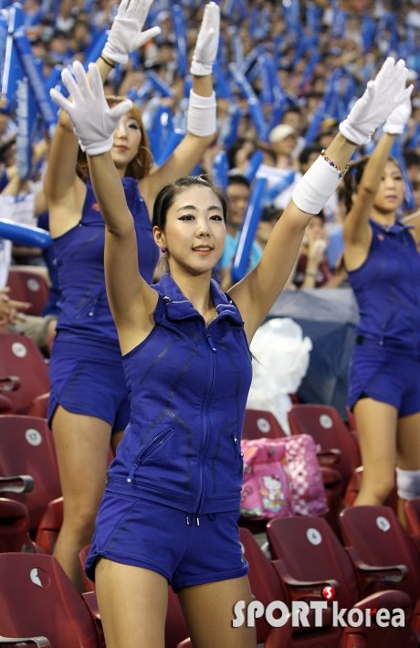 19일 오후 서울 잠실 야구장에서 열린 `2012 팔도 프로야구` 두산베어스와 삼성 라이온즈의 경기에서 삼성 치어리더가 열띤 응원전을 펼치고 있다.