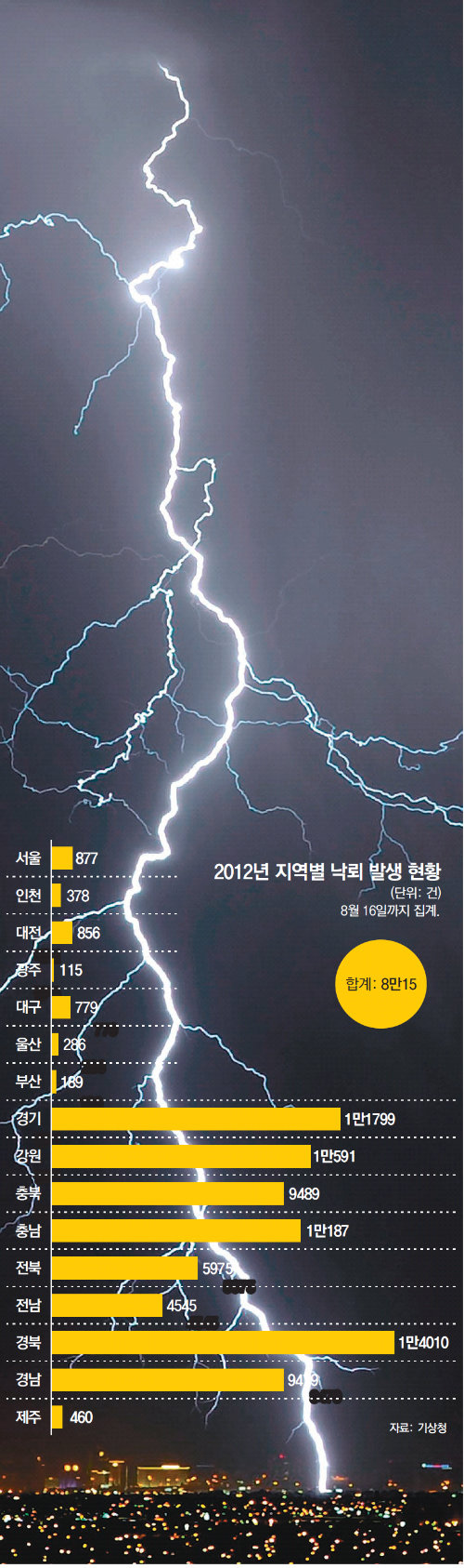 2002년 여름(6∼8월)에 발생한 낙뢰는 3만5127회, 2007년 같은 기간에는 19만7795회로 급증했다. 2009년 5만4651회, 2010년 13만7406회, 2011년 6만6582회 등 증감이 반복되고 있지만 전반적으로 증가 추세라는 것이 기상청의 분석이다.