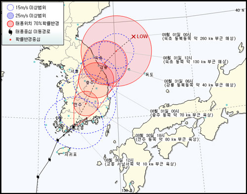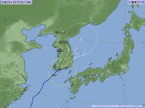 일본 기상청은 하루 전 덴빈이 목포 부근에 상륙해 강릉 동쪽 해상으로 빠져 나갈 것으로 예상했었다.