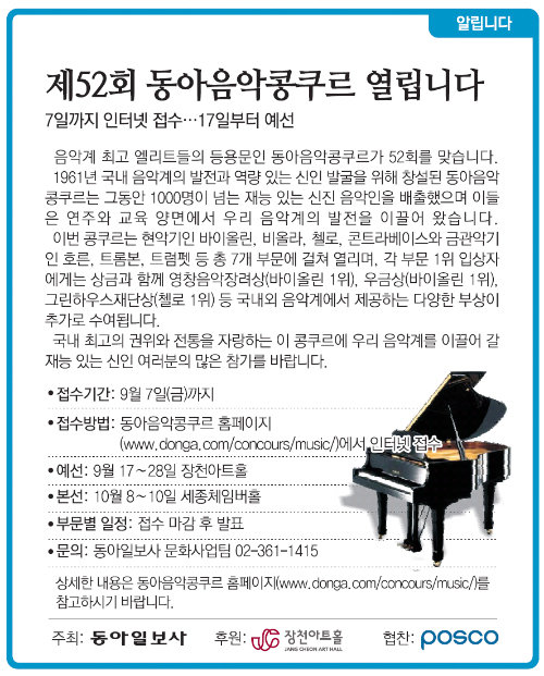 [알립니다]제52회 동아음악콩쿠르 열립니다